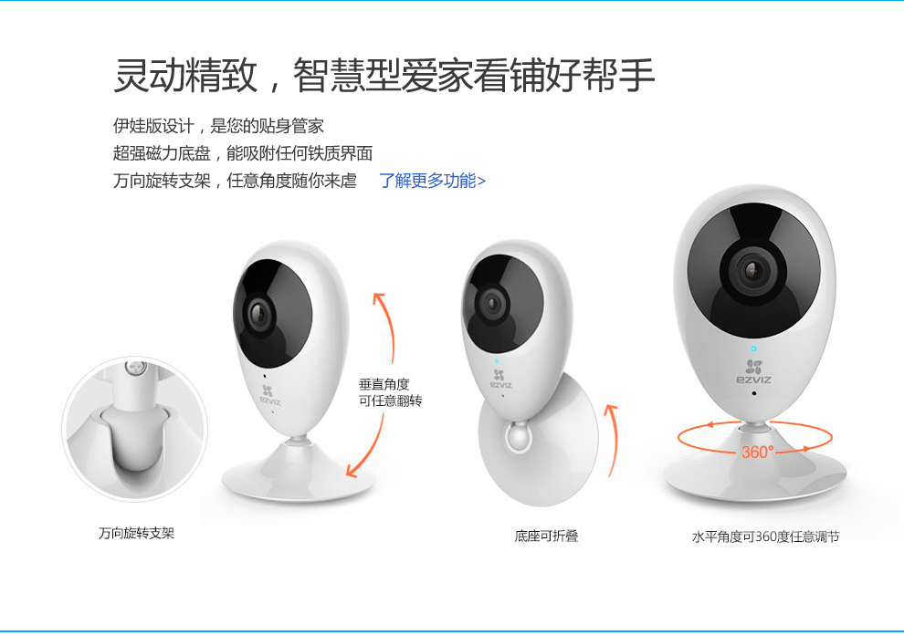 海康-螢石高清家用網絡攝像機,200萬像素,1080P高清分辨率,畫質清晰,成像效果一流;高清廣角視角,輕松覆蓋每個角落,;紅外高清夜視效果翻蓋范圍達10米,再也不用擔心夜晚看不清的尷尬。